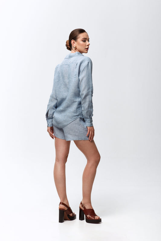 Blue linen set with shirt and shorts