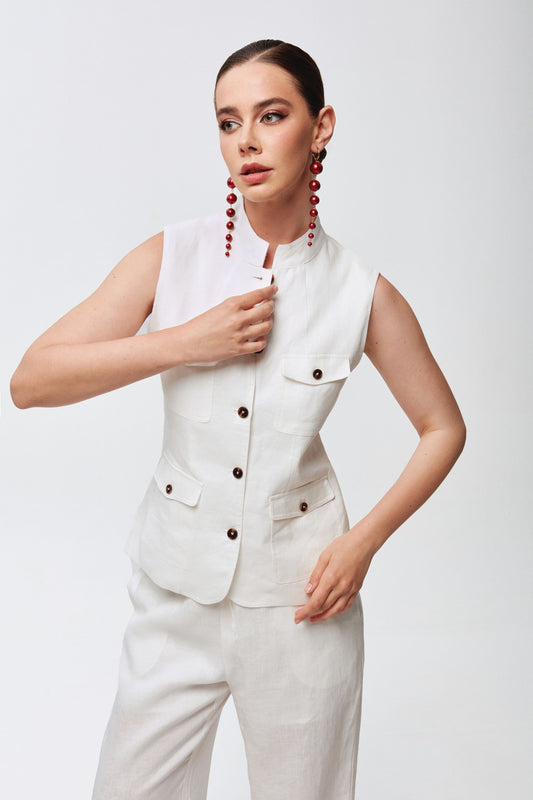 White linen set with vest and trousers