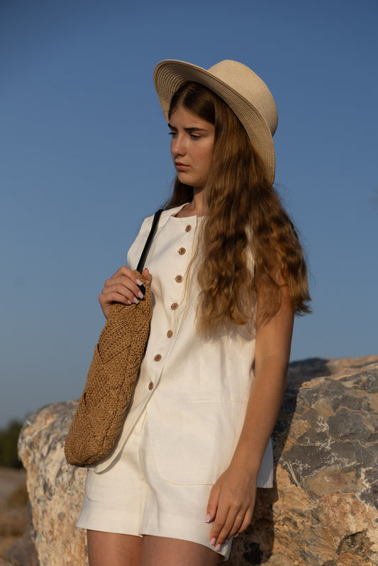 White linen set with vest and shorts