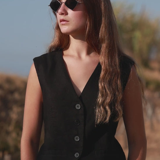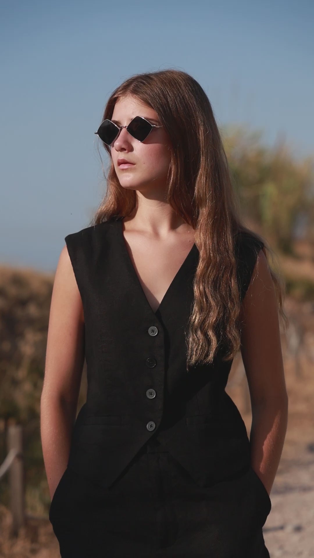 A linen suit comprising a pair of shorts and a vest is a perfect embodiment of comfort and style for your summer wardrobe. The fabric is soft, breathable, and made entirely of 100% pure linen, ensuring both comfort and durability. The impeccable stitching and tailored fit ensure that you feel confident and at ease in this ensemble.